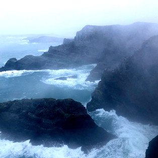 Sunday was a fun day. Sunday morning, we all woke up, reminisced on the night before, got ready and went to noon mass and then went to go venture out for the day. We were on our way to the Cliffs of Kerry and Portmagee so it was about an hour to an hour and a half ride, but while we were driving, we saw this little divot in the road so we decided to get out and see what it was. We walked down this muddy slope and saw the water. We walked on a part of the land that was shown only because it was low tide, but with the low tide, the ocean, the fog and the trees surrounding us, it was amazing. The view was just crazy. So after our little adventure, we got back in the car and continued our drive. We were all hungry so we stopped in the town called Sneem and got some food at this little diner called Village Kitchen. Now at this little diner, I got hot chocolate because of course and with how many marshmallows were on this drink, it was crazy, and plus the drink was so creamy and delicious that it has left an imprint in my brain. Okay I'm done talking about hot chocolate. So to continue on, after lunch, we continued our drive again. We then arrived at the Cliffs of Kerry. Because of how foggy and rainy it was out, there was absolutely no one else there so it was nice to have the view all to ourselves. Because of the fog though, the view wasn't as pretty as it could have been on a sunny day plus we weren't able to see Valentia Island which is the island just off the coast of the Cliffs of Kerry and that is where Jedi Island is. Anyways, we walked all the way to both tops of the cliffs and still was taken aback by the views. Once we left the cliffs, even though it was only around 6/6:30 p.m., we all decided that we should just go back to our cottage because the weather was so crappy. Once the bumpy, yet fun, car ride was over with, we arrived back in Kenmare, but we arrived to a surprise.