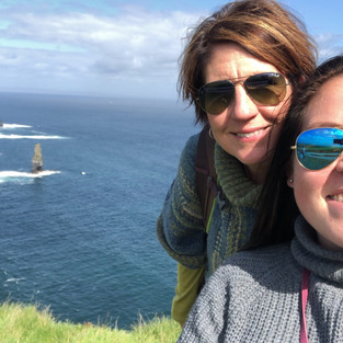 Monday, Haley tagged along with Mom and I and we decided to do a day trip to the Cliffs of Moher. We all wanted to see the back roads so that's the way we took, which inevitably took us 5 and a half hours to get there, but it was a cool way to go either way. We made it there and loved the views. We stayed there for a good amount of time, to then stop for dinner on the way back and get back at a reasonable time. I ended up staying the night in my dorm that night and Haley and I went out with our other roommate Nicole, which coincidently all three of us have become really good friends. We went to our campus' bar which I found very odd at first because there are never any bars on campus back in the US, but thinking about it, everyone that goes to college here are all drinking age. Tuesday was a fun day because it was mom's last night here in Dublin. We first did a self guided tour of campus, then got ready, walked to Grafton Street and continued on our night. We ended up doing a mini pub crawl which was a lot of fun. Our first pub was called the Wellington then we got dinner at Chamber's. Our next pub was Trinity bar, next was The Quay and our last pub was Bruskers, but for the last bar, we opted out of alcohol and we gorged on a warm dark chocolate brownie and cheesecake. We walked around the cobble stone streets at night and with the weather and the entire atmosphere, I was so glad my mom was the person I was experiencing it with. Wednesday came knocking and that is when mom had to leave. We had breakfast and mom dropped me back off at my dorm. It was bittersweet, but I was excited to be on my own on this adventure.