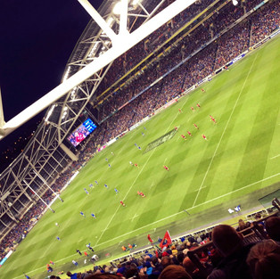 I got back to my daily routine after that, but then the weekend came. My roommate Nicole and I weren't traveling anywhere because we wanted to have a bit of a break, so we decided to spend the day downtown, shopping and then we bought tickets to go to a rugby match that Saturday. It was super fun because as I said above, we walked around downtown, ate some food, then made our way to the match. We got off at the bus stop and didn't really know where to go, but apparently it was a big game because we followed a huge crowd wearing the rugby team's athletic gear so we put two and two together and assumed they were all going to the match. We arrived at the match, went to our seats and the game immediately started. Nicole and I related rugby to a mix of football, soccer and wrestling. In my opinion it is a spot on explanation because although I have watched rugby before, this game was different. It looked like there were barely any rules, but that made it so much more fun. The first half was 40 minutes and because of the game barely ever stopping, the time flew by. Same with the second half, which was also 40 minutes. The match was so fun that I would highly recommend people to go to at least one in their life. The team we were rooting for, which was Dublin's team, Leinster, ended up winning 30 to 22 so that was also super cool to witness. After the game, Nicole and I decided to go get some ice cream to end the night and everyone can guess where we went. Gino's has to be the best gelato I've ever tasted and because I've gone a few times, I'm trying to get a different flavor each time I go so I can try them all before I leave. It is a challenge I have accepted and the passionfruit sorbet that I got that night has to be one of my tops so far.