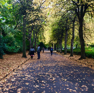 Last week, I did break from routine though because I met some family friends from the states for dinner. My deacon from my church back home and his wife, Deacon Tim and Mrs. Deacon Tim, were traveling all around Ireland the last week of September and the first week of October. They ended up flying out of Dublin, but the night before they left, we met up for dinner downtown Dublin at Chamber's. After dinner, we ended up going to get some gelato from Gino's, if anyone is surprised because by now it is my favorite food place here in Dublin. While eating our Gino's, we walked around Grafton street late at night. I have to admit it was very bizarre showing someone where I have been, being comfortable and confident walking around showing them and telling them what my life has been like since arriving in Ireland. I felt like a sort of tour guide, except for my life. It was a weird experience, but I liked it. I loved being able to get excited about talking about this little parlor right around the corner that has amazing gelato, as well as recommendations for dinner because I've been there before and really liked it. The only thing I wasn't able to show them was St. Stephen's Green and that was just because it closed at dusk and it obviously was dark out when we were done with dinner so it didn't work out. I did though, before meeting DT and Mrs. DT, I walked around Grafton street to run a few errands, saw some gorgeous flowers that were being sold, then walked through St. Stephen's Green on my own time because it was sort of on the way to the hotel we were meeting at. Walking through it, I realized that it was even prettier than the first time I went there. Since Fall was arriving that particular week, the leaves were changing color and some were starting to fall. It was a gorgeous view and I'm glad I took that slight detour before dinner.
